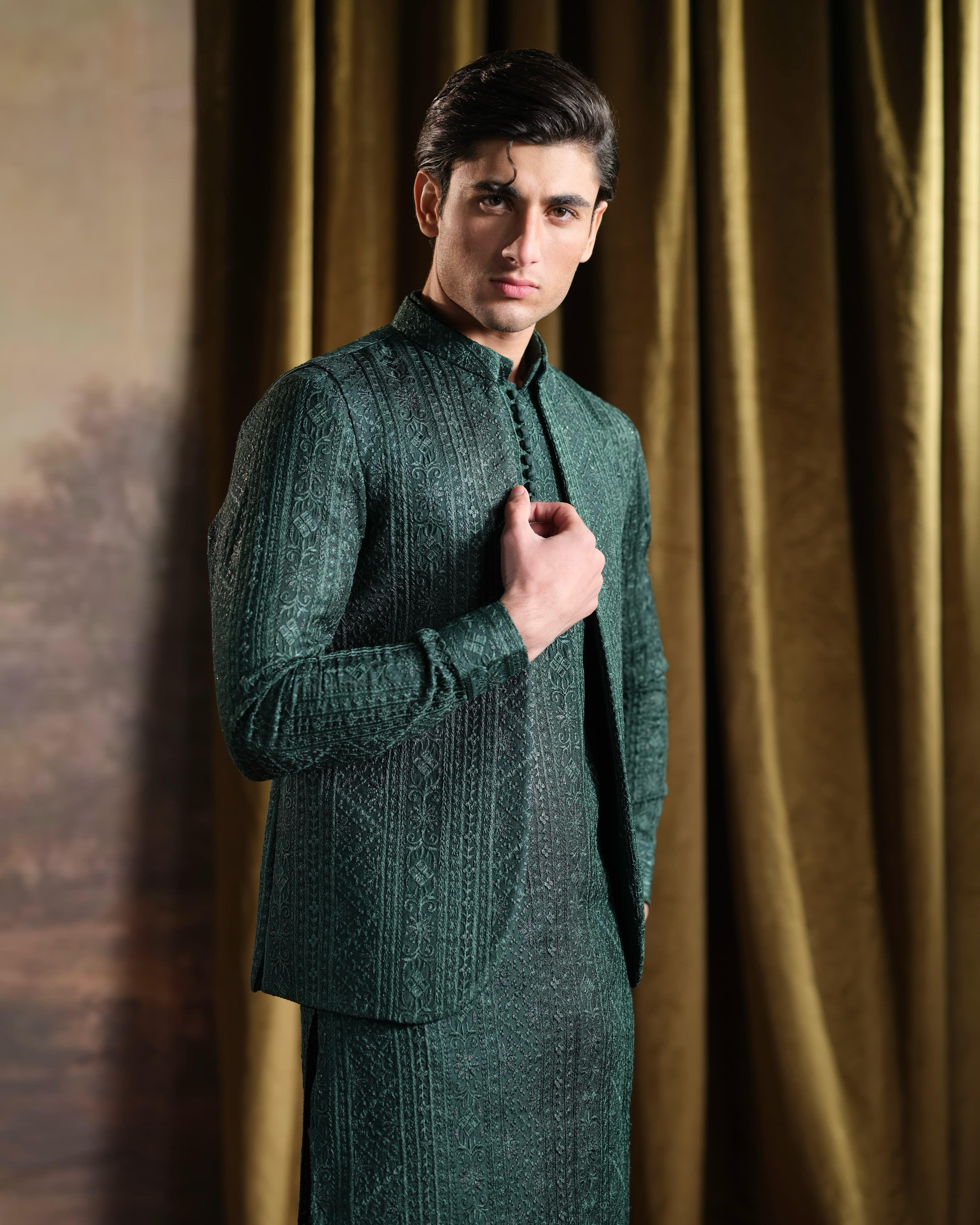 While the Pakistani fashion industry predominantly focuses on womenswear, with collections ranging from ‘luxe lawns’ to embellished formals and semi-formals, Emraan Rajput keeps his eyes focused on the sartorial realm for men. The designer’s Eid collections always tend to be extensive and very varied. There are understated kurtas and shalwars, more embellished formal sets and then, a dash of bling for men who want to make a statement.
