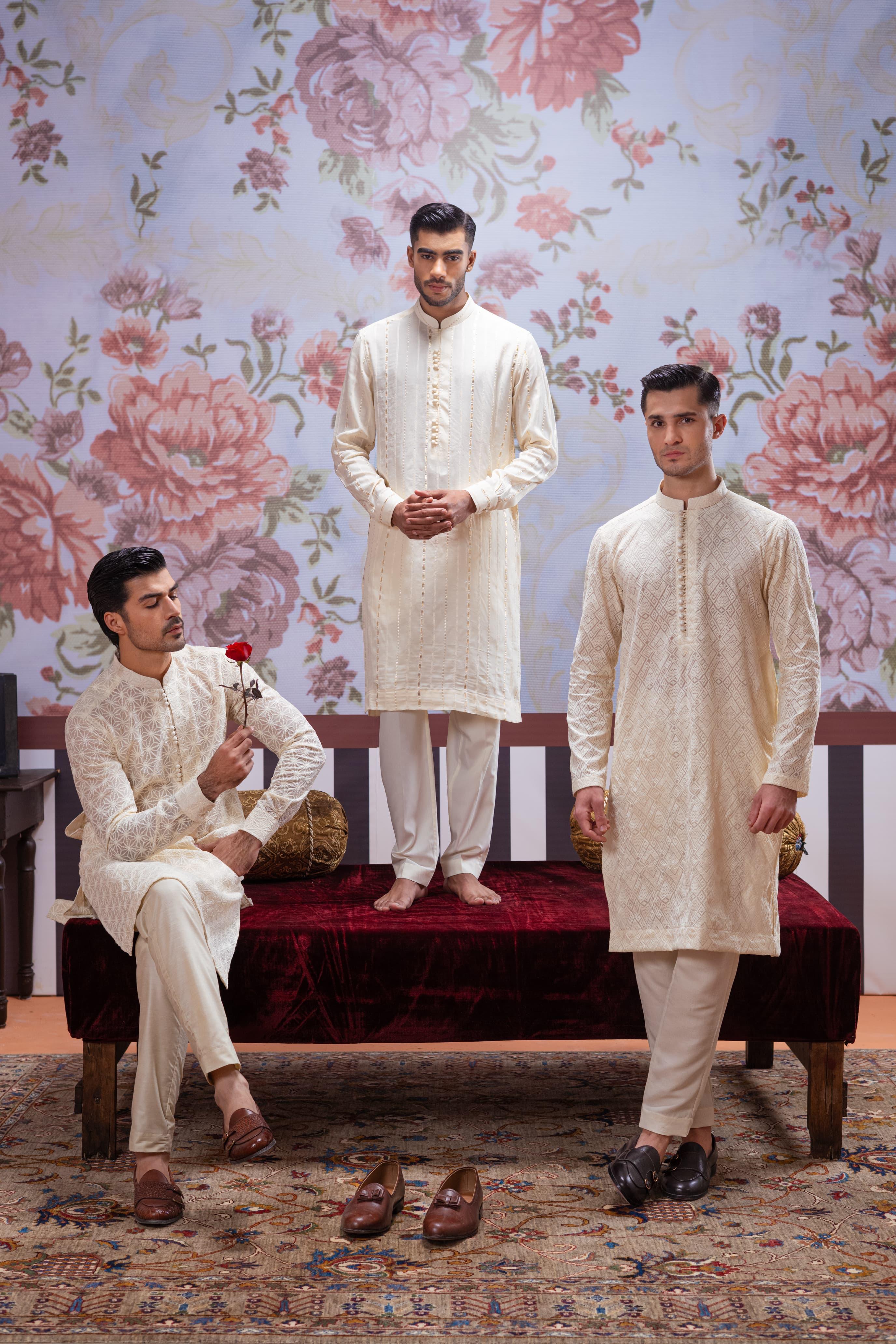 “We have customers who have varying tastes,” says the designer. “Men have gotten increasingly choosy in terms of colors and designs. A lot of men are now preferring embroideries and more experimental colors because the clothes can be used for Eids and weddings.”