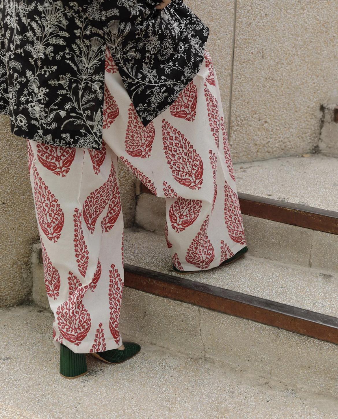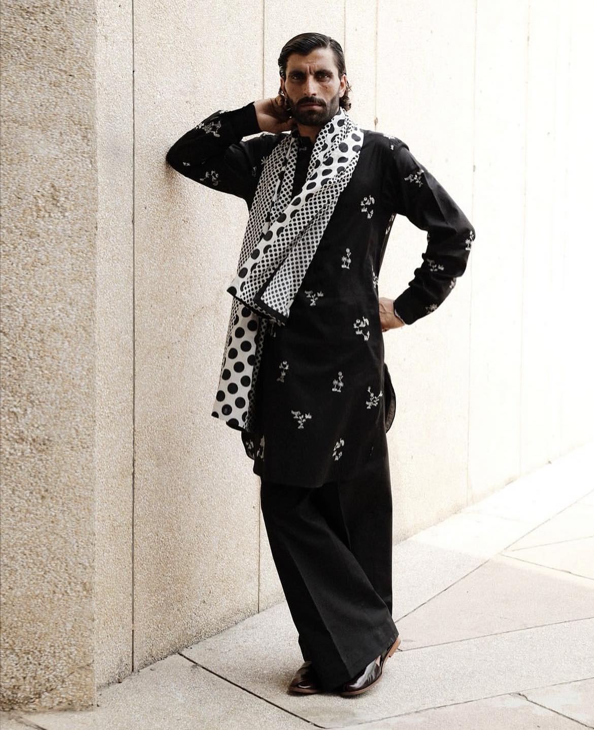 It’s also notable that while the designs are very savvy, they are not at all age-specific. The flared shirt with dull golden print could be worn just as easily be a teenager as by a working woman in her 40’s. The basic kurtas with statement embroidered patterns could be worn by men and women of all ages. It’s all quite clever and a lesson in retail 101 – Hussain knows how to create clothes that may look great on young models but would appeal to the middle-aged Pakistani man or woman. After all, the young ones may have great fashion sense but generally, they don’t have the finances to splurge out on clothes the way the latter do!